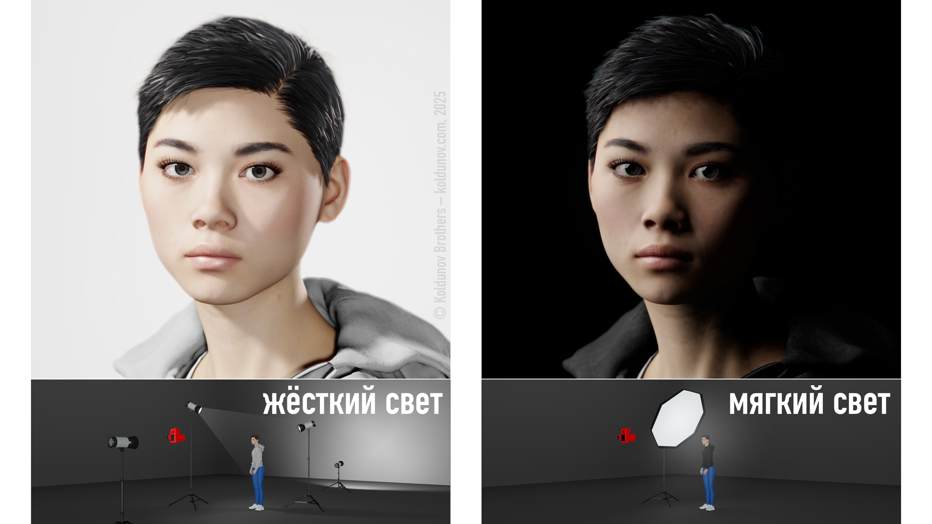 - Создание мягких и равномерных теней на лице модели.